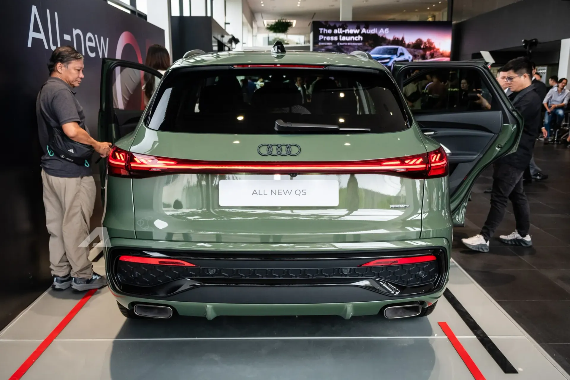 Chiếc Q5 2026 trưng bày trong sự kiện là thế hệ mới với thiết kế tinh gọn và hiện đại hơn trước. Xe tiếp tục sử dụng khung gầm PPC quen thuộc nhưng đã được tinh chỉnh nhẹ. Ngoại thất sở hữu đèn pha LED ma trận và đèn hậu OLED kỹ thuật số thế hệ mới có khả năng tùy biến đồ họa, tạo điểm nhấn cho mẫu SUV hạng sang trong bối cảnh các hãng đang đẩy mạnh số hóa thiết kế ánh sáng.