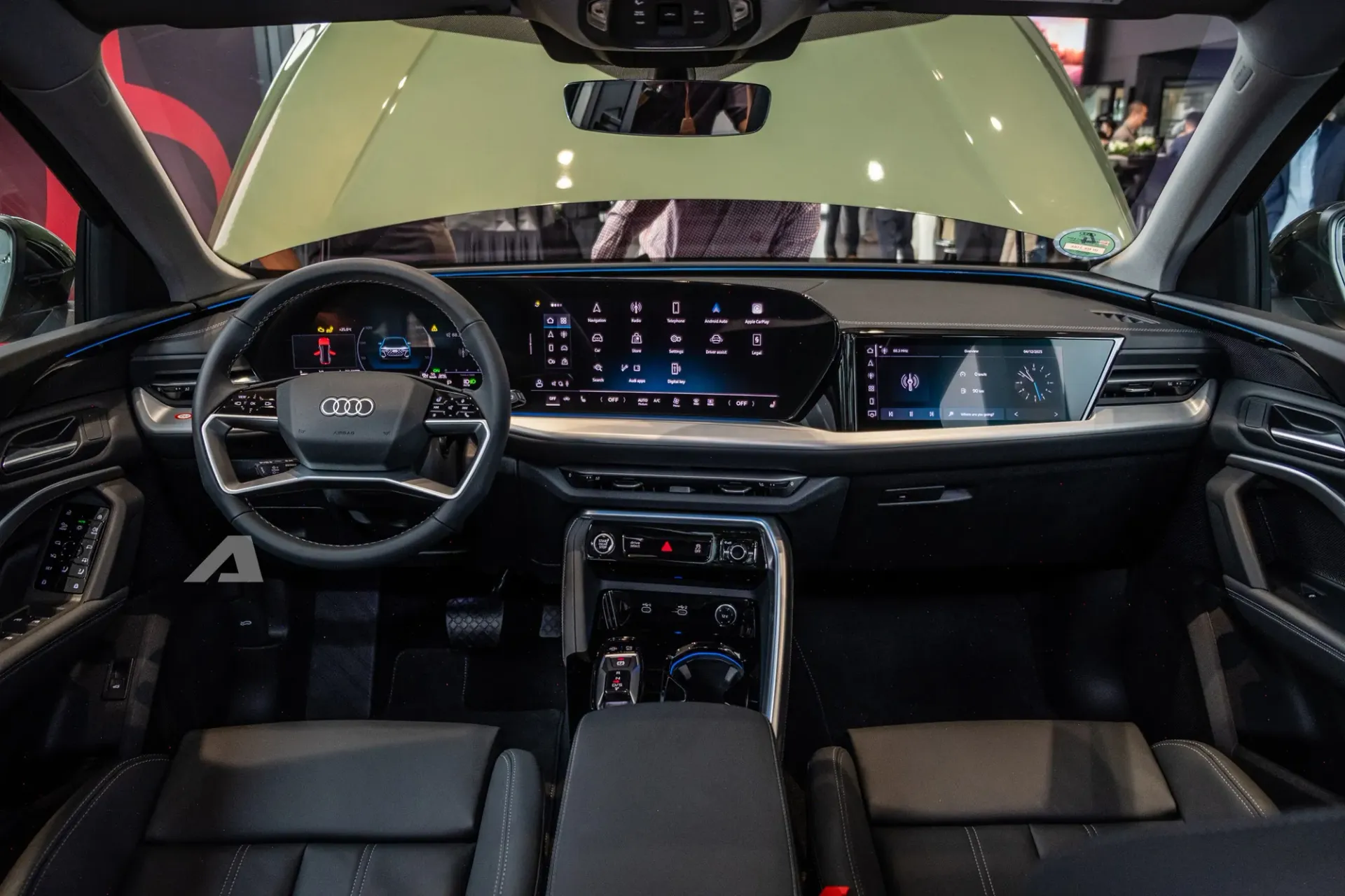 Bên trong, nội thất Q5 2026 được làm lại theo hướng tối giản, tập trung vào công nghệ. Xe được trang bị ba màn hình: đồng hồ kỹ thuật số 11,9 inch, màn hình trung tâm 14,5 inch và tùy chọn màn hình phụ 10,9 inch phía ghế hành khách.